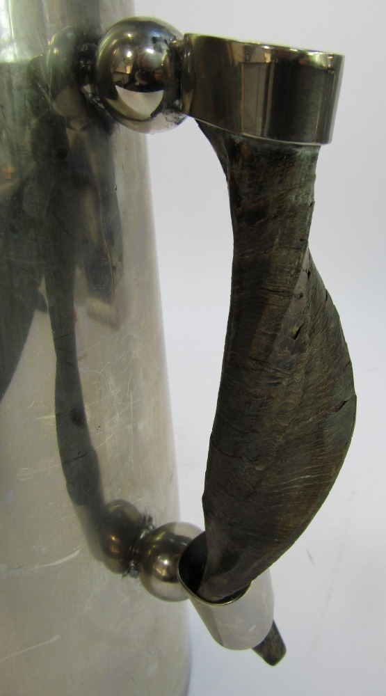 Lot 464A Tlellulino of New York silver plated water jug, with a horn handle, label to underside, 30cm high.