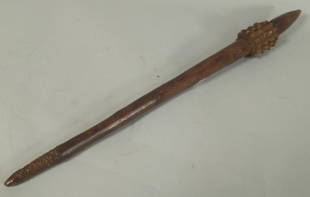 • Tribal Art. A 19thC Aboriginal club with a pineapple shaped head and incised handle