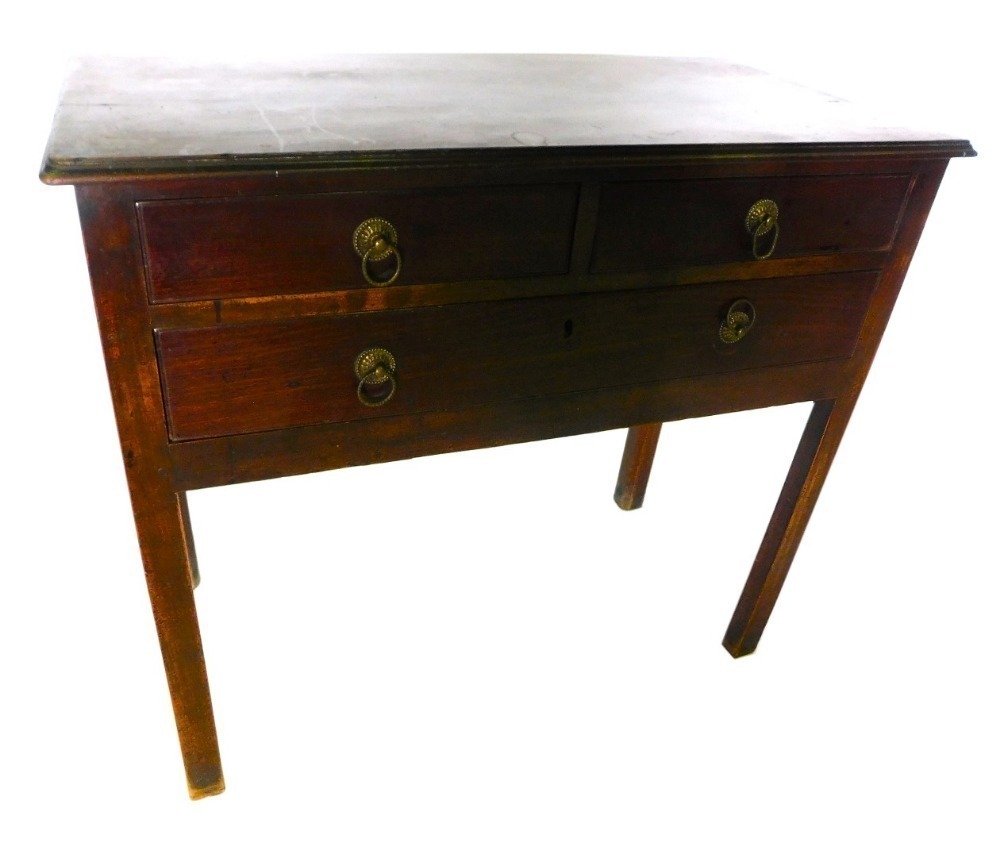 Lot 47A George III mahogany lowboy, the rectangular top with a moulded edge, above two short and one long drawer, with brass ring handles, on plain supports, 74cm high, 3cm wide, 43cm deep.